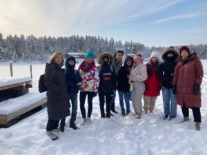 3º Día (22/02/2023): El alumnado del IES Federico García Lorca que participa en el programa Erasmus en Finlandia ha participado en el día de hoy en actividades relacionadas con el estilo de vida tradicional finlandés. Se ha realizado un sendero por el bosque con raquetas de esquí y esquís de fondo. Después de una comida tradicional finlandesa, han experimentado una sauna de vapor y un baño en bañeras en la nieve en la localidad de Rautio.